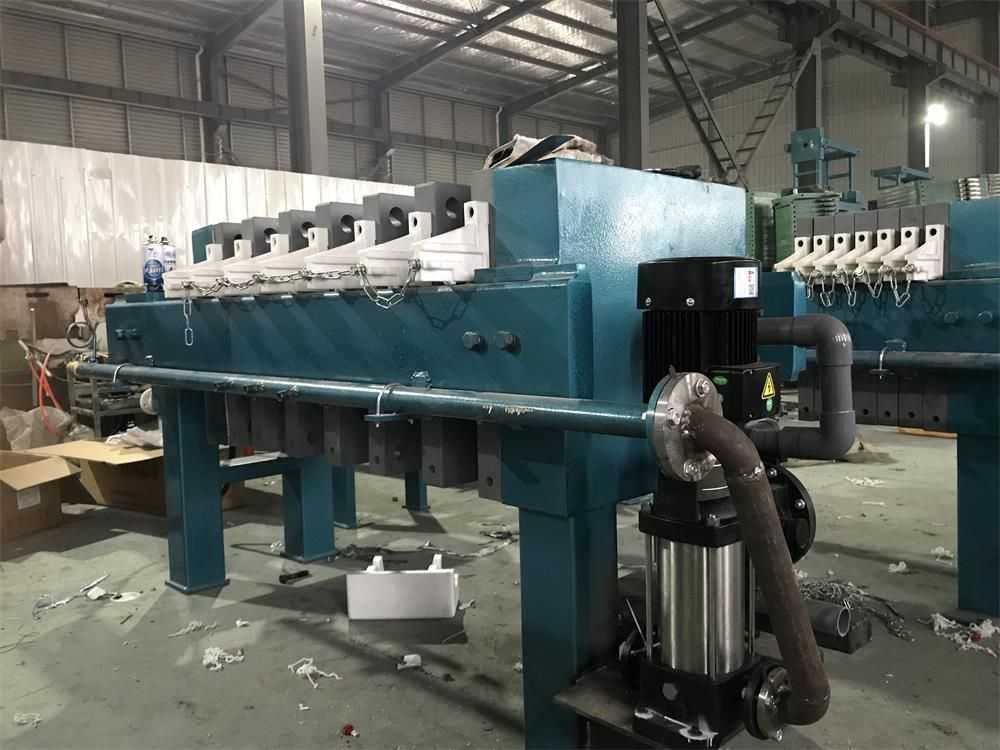 泵機(jī)一體式板框壓濾機(jī),是進(jìn)料泵和壓濾機(jī)直接管道連接好的便捷壓濾機(jī)。優(yōu)點(diǎn)是客戶安裝方便,節(jié)省現(xiàn)場空間,過濾速度快、泥餅含水率低。